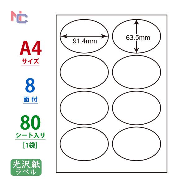 Scl 20 L 耐水 楕円形 光沢紙ラベルシール 1袋 80シート A4 8面 91 4