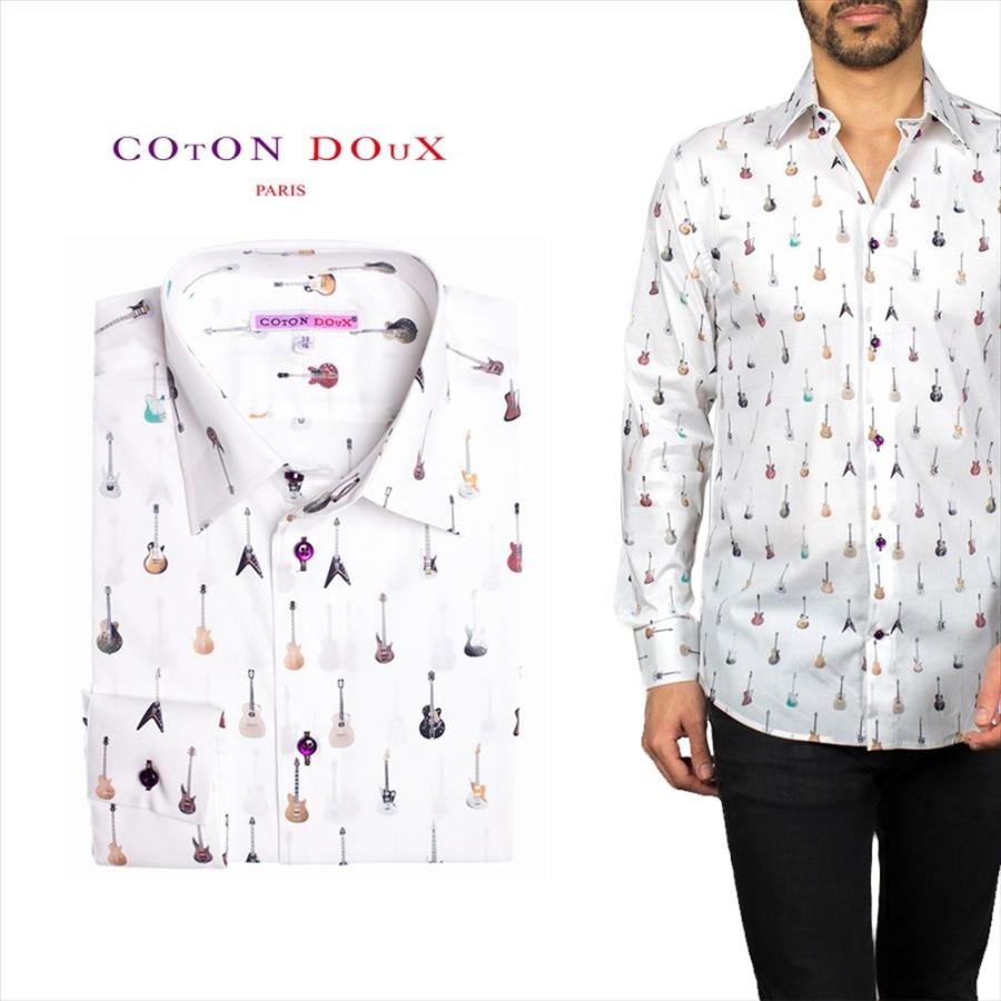 柄シャツ カジュアルシャツ メンズ 長袖 カジュアルシャツ レトロ お洒落 可愛い 楽器柄 ギター柄 Cotondoux コトンドゥ