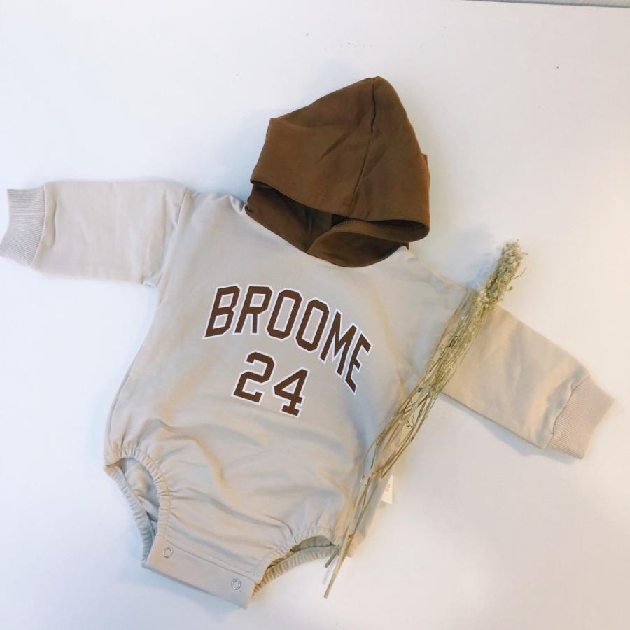 フードパーカーロンパース 即納品 ベビー服 ロゴロンパース