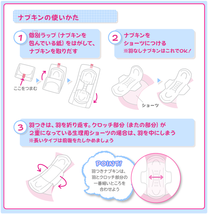 ナプキンの正しい付け方を知ろう エリス 女の子クリニック