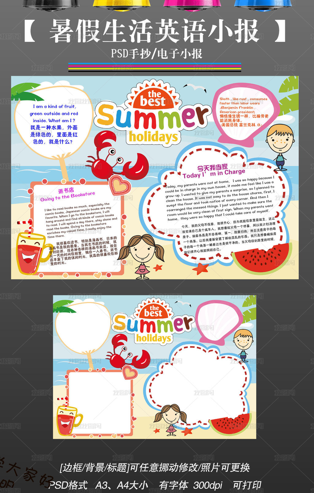 Ps我的暑假生活手抄报英语假期旅行读书电子小报图片素材模板下载 英语手抄报 我图网