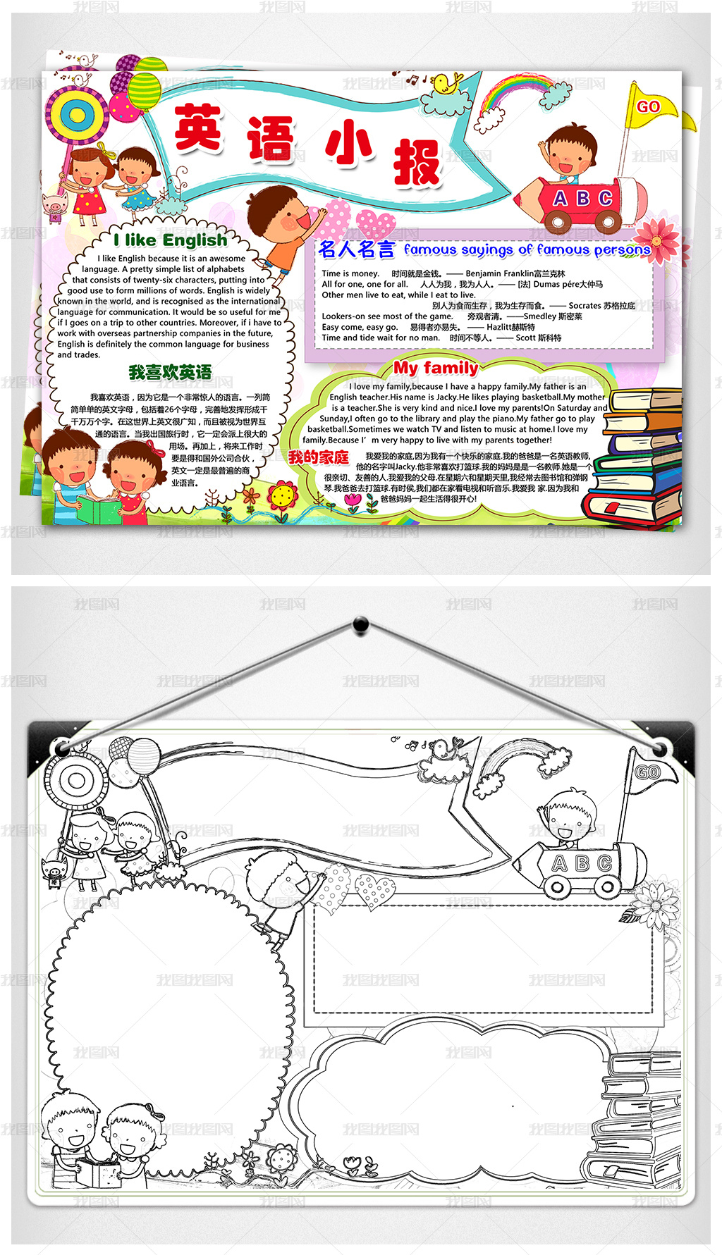 Word Ps英语 中英文小报电子手抄报图片素材模板下载 英语手抄报 我图网
